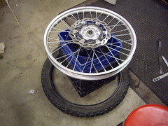 I received my Dunlop D606s for my WR250R last Friday, but I didn't receive the new heavy duty tubes to go with them. Since I was lazy and didn't want to remove the tires twice, I waited. Last night I was finally able to get them installed! This is my first time changing motorcycle tires, so I hope I don't pinch a tube.